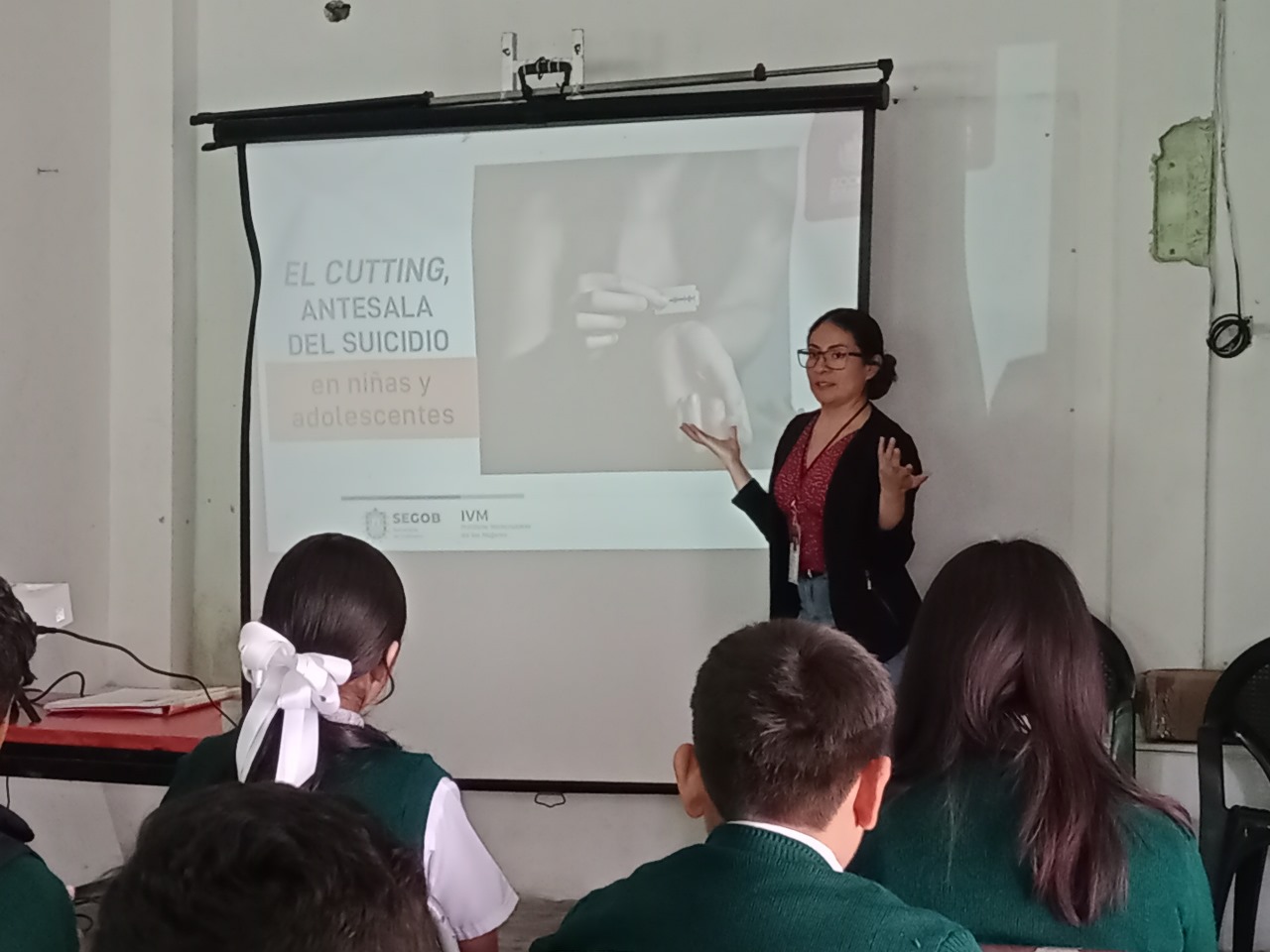 Desarrollo del Tema: Durante la plática la psicóloga brindó información relacionada con la salud mental, los signos de cutting, las y los adolescentes participaron activamente preguntando o comentando acerca del tema.