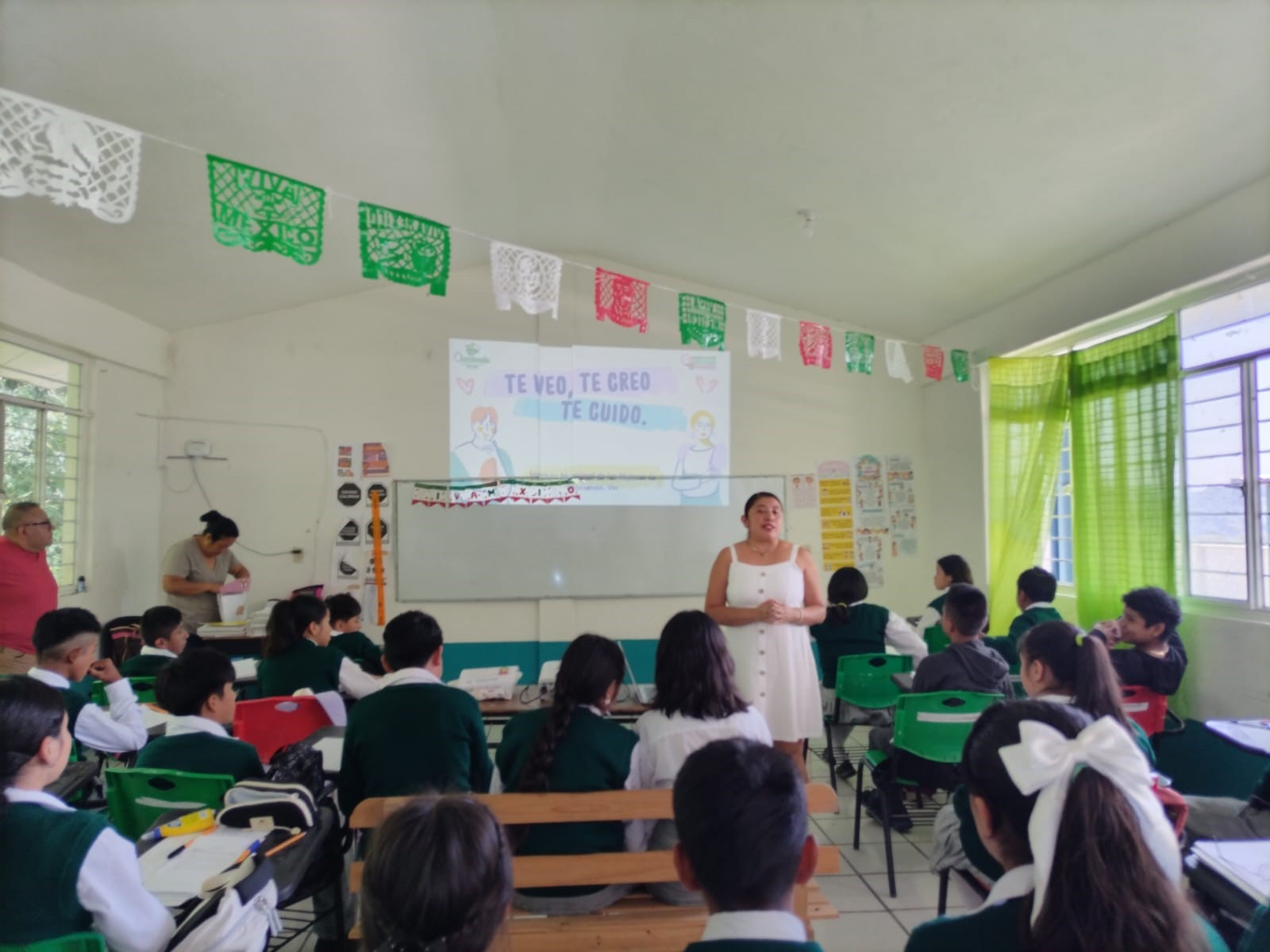 Desarrollo del Tema: Durante la plática, se le explicó al alumnado sobre las consecuencias que tiene el abuso sexual infantil, se les comentó también sobre la forma de prevenirlo y las características para identificarlo y se les entrego una imagen de un niño y una niña con los colores rojo, verde y amarillo con el objetivo de que identifiquen las partes del cuerpo que se pueden tocar y las que no, además se les pidió poder compartir la información.